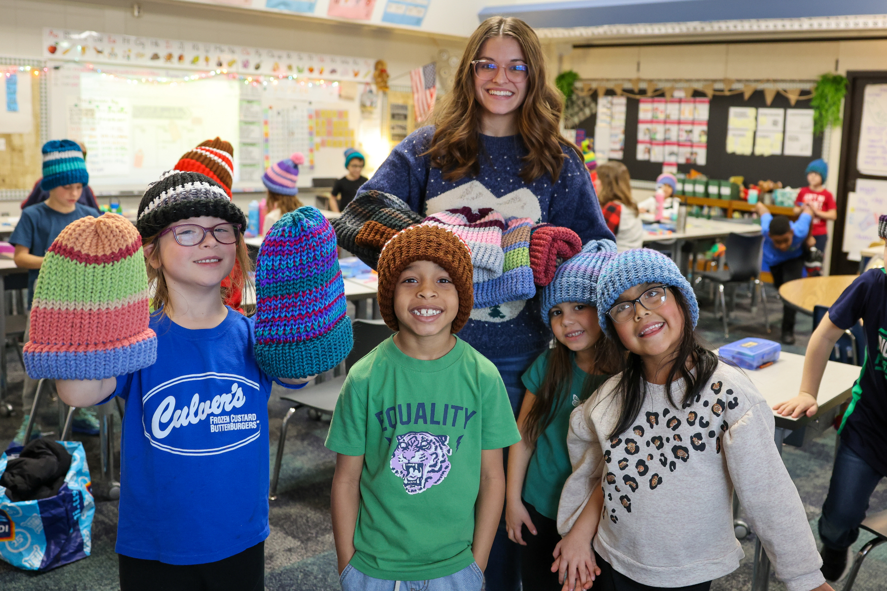 Our compassionate and engaged teachers participate in ongoing professional development, strengthening the Meadow’s Edge community—a true family working together to ensure students feel supported academically and holistically. This spirit of care is reflected in the everyday actions of our staff. For example, since her first year of teaching in 2018, first grade teacher Mrs. Amy Mero has made it an annual tradition to hand-knit a winter hat for every one of her students. Each year, she thoughtfully selects yarn colors and patterns to create one-of-a-kind hats personal gifts that her students can treasure and wear throughout the cold winter months. Click to read more.